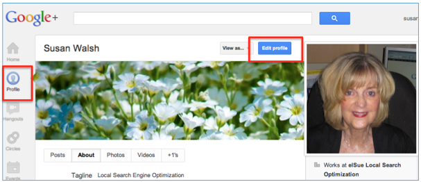 Once you have created your Google+ page, click on "Profile" and "Edit profile". Fill in the information to build your profile page. Most importantly- add a nice "head shot" photo of yourself. This will be the photo used when your blog posts or articles appear in Google's search results. There are many great blog posts on building your Google+ profile. Go to Google and search for them. For this post, we want to concentrate on rel=author setup.Adding Contributor links to your Google+ profile